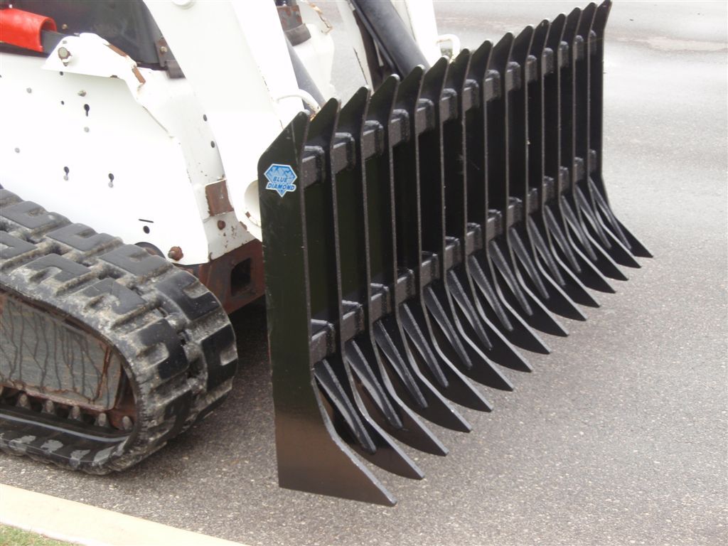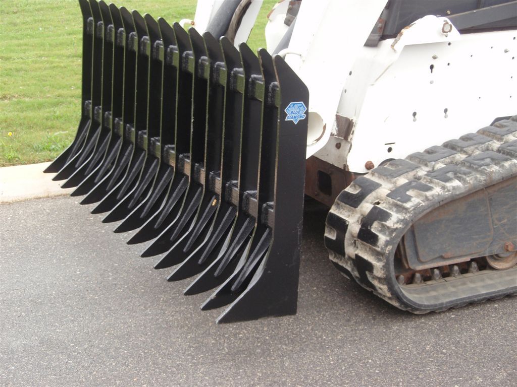 The Blue Diamond® Severe Duty Root Rake is engineered for intense land clearing and site preparation using your skid steer or track loader. Built from heavy-duty 5/8" solid steel tines, this rake delivers the strength needed to move large rocks, uproot stubborn roots, and gather debris into manageable piles. The 5-1/4" tine spacing allows dirt to pass through while capturing sticks, rocks, roots, and other unwanted materials—perfect for cleanup, brush management, and burn-pile preparation.
