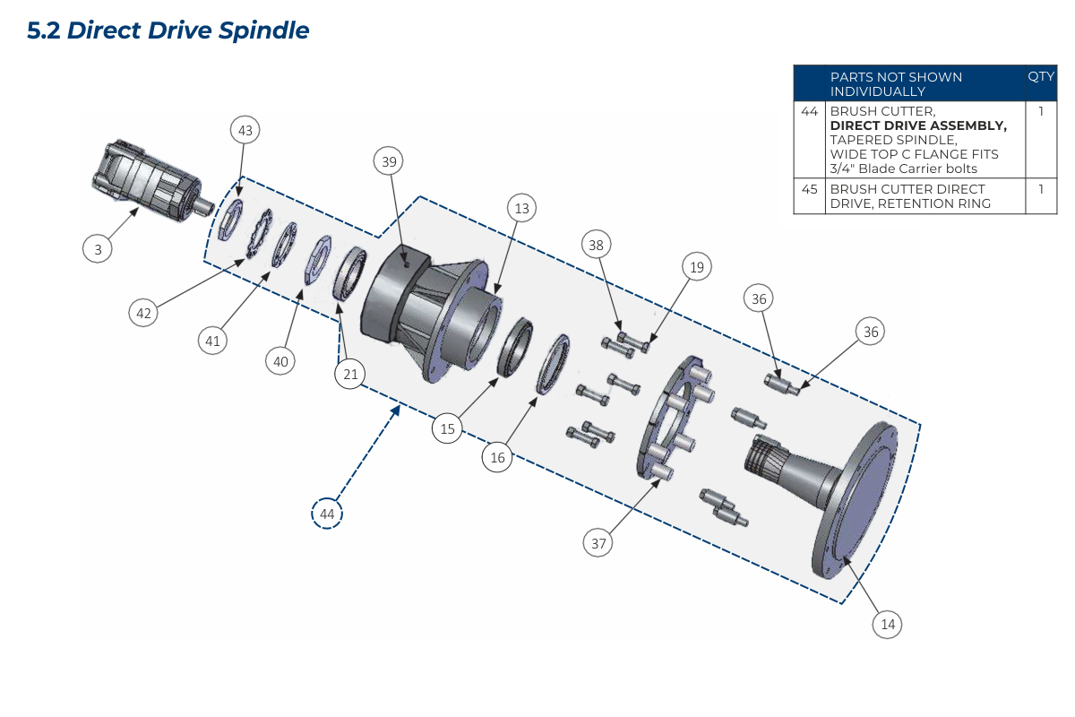 203074 - BRUSH CUTTER DIRECT DRIVE LOWER BEARING & RACE (5" DIAMETER) get S/N for 3" spindle Units manufactured 2014 and older and a selection in 2022 with straight spindles do not use this bearing, see 203075 |